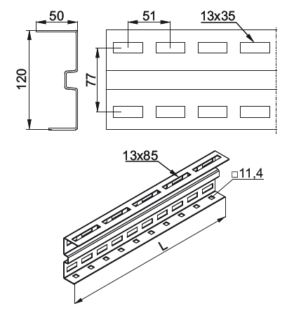 - erweiterte Lochung im oberen Teil ermöglicht die Montage von