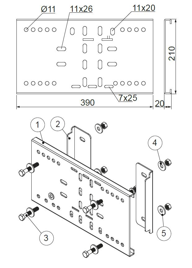 für BDH I-Träger (60x154) – 2 St. 3. Schraube M10x60 – 4 St. 4. Mutter M10 – 4 St. 5. Unterlegscheibe
