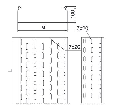 – Verbindung von Kabelrinnen nur mittels Verbinder (keine Aussparung an der Kabelrinnenseite) und