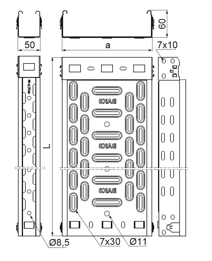 – Eine dichte Lochung mit Prägungen sorgt für einen perfekten Wärmeaustausch und ist so konzipiert, dass die Kabelrinne am BAKS-Ausleger an einer beliebigen Stelle montiert werden kann