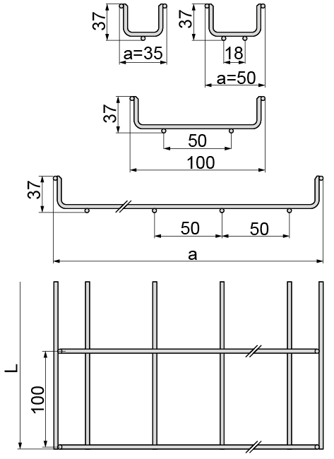 Verlegung einer Kabeltrasse. Verwenden Sie das Produkt nur in der Korrosivitätskategorie C1.