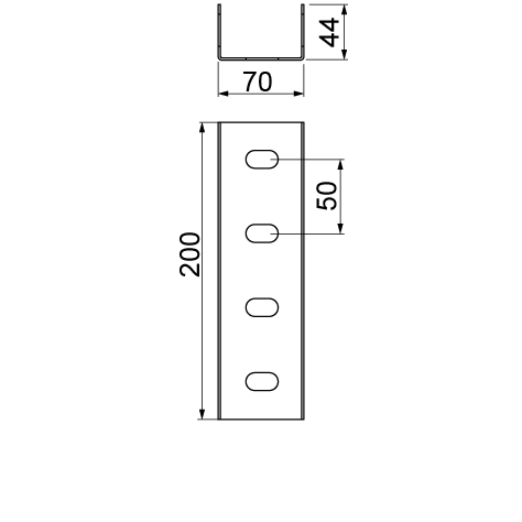 Verbindung von U-Profilen. Material MC - Magnelis®-beschichteter Stahl Zusätzliche Informationen – für die Montage des U-Profils mit dem Verbinder sind Schrauben vom Typ SGKFM10x20 oder SGFM10x20 zu verwenden