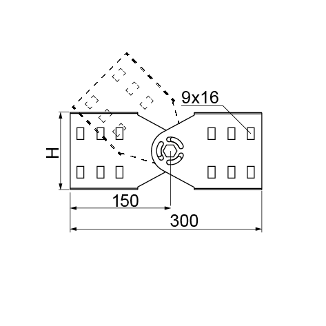 Verbindung von in verschiedenen Winkeln verlegten Kabelleitern. Winkeleinstellung im vollen Bereich mit Verriegelung.