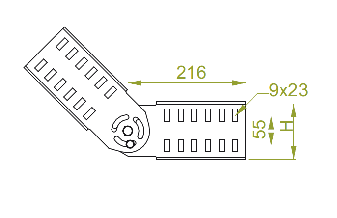 Verbindung von in verschiedenen Winkeln verlegten Kabeltrassenelementen. Winkeleinstellung im vollen Bereich mit Verriegelung.
