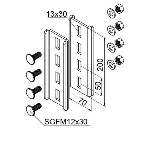 SGFM12x30 mit Unterlegscheiben und Muttern.