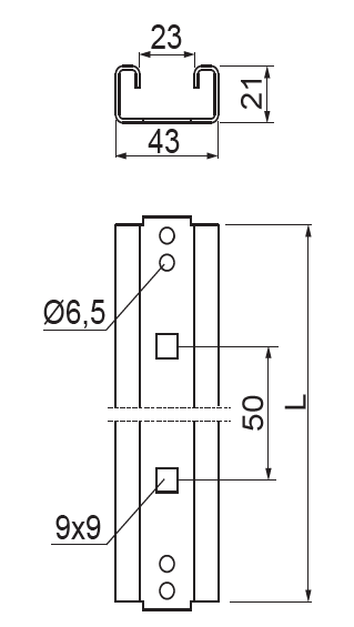 – szczebel przystosowany do montażu uchwytów kablowych do przewodów energetycznych firmy ELIS z wykorzystaniem nakrętki rombowej NRM...