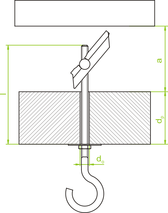 | Symbol | Katalog-Nr. | Bohrer Ø d0 (mm) | Maximale Plattendicke dp (mm) | Minimaler Raum a (mm) | Dübellänge I (mm) | Menge (Stück) | ||
