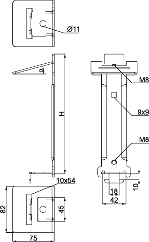 - Halter kann am U-Profil mit einer Schraube mit Gleitmutter