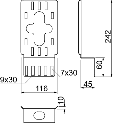 Anbringen von Installationsdosen an Kabelrinnen und Kabelleitern. Der Halter ist für den Anschluss- und Installationsdosen vom Typ PMO1, PMO2, PMPO und PMKO geeignet.