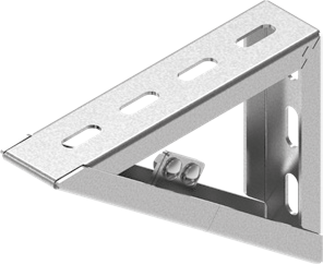 Unterstützung von Kabeltrassen. In Kombination mit einem U-Profil (z.B. CM...41H41...) zur Verlängerung des Auslegerarmes, die von der Wand entfernte Montage der Kabeltrasse ermöglicht