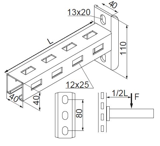 – Es wird eine Montage an einer offenen Seite des U-Profils mit einer Breite von 40 mm mit SRM10x25-