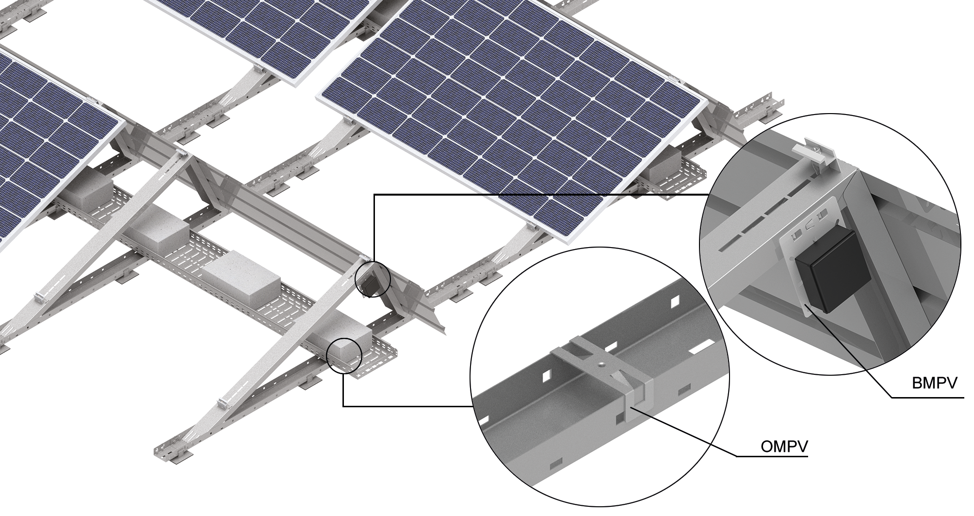 – montaż pod panelem fotowoltaicznym chroni osprzęt przed warunkami atmosferycznymi
