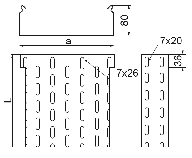 Symbol Catalogue number Width a (mm) Length L (mm) Weight (1m) (kg) Quantity in box (pcs. / m.) Effective section