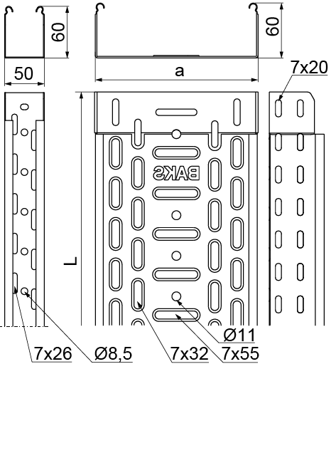Cable trays support system without couplers. Optional connecting of trays through inserting one tray into another and wrench with screws. We recommend using of couplers with heavy loads only.