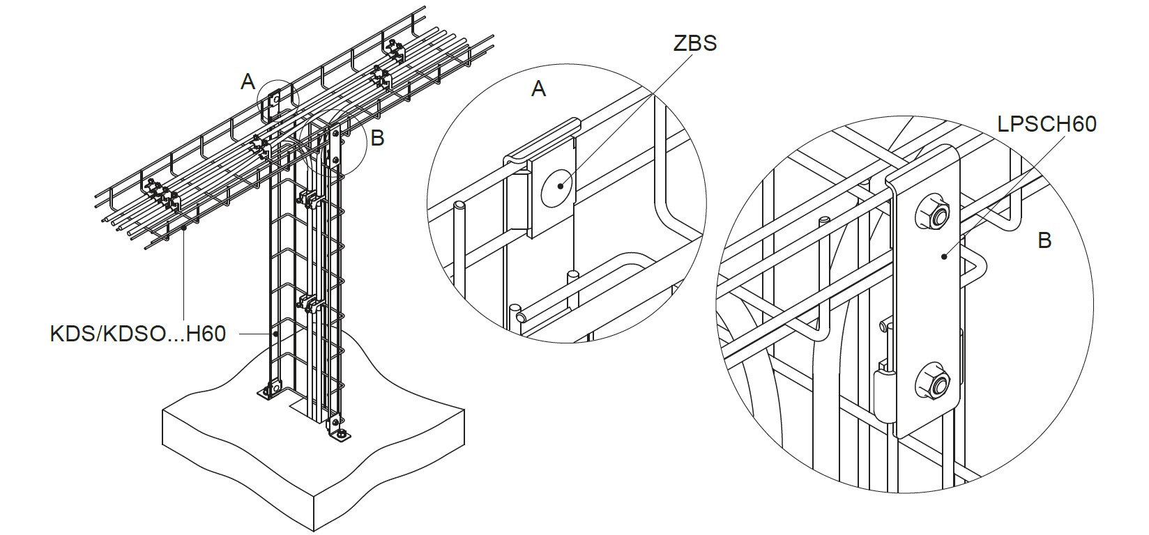 – łączenie korytek siatkowych z wykorzystaniem zacisków ZBS