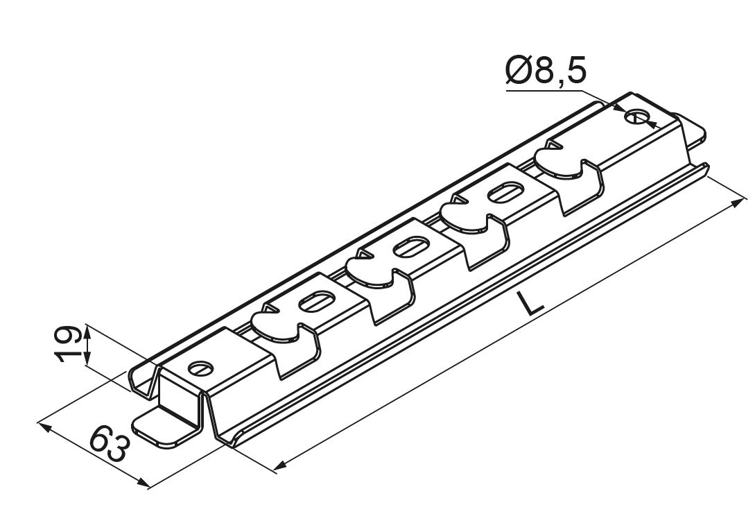 – the shape of the mounting profile allows direct mounting to walls and substrate using shot fired anchor bolts