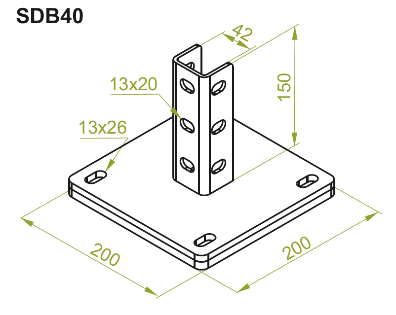 Modular support system for setting up cable routes, air conditioning equipment, pipes, chillers, walkways, solar panels, photovoltaic panels, etc. on roofs. Mounting on flat roofs. The system is suitable for 40H40 or 41H41 support channels.
