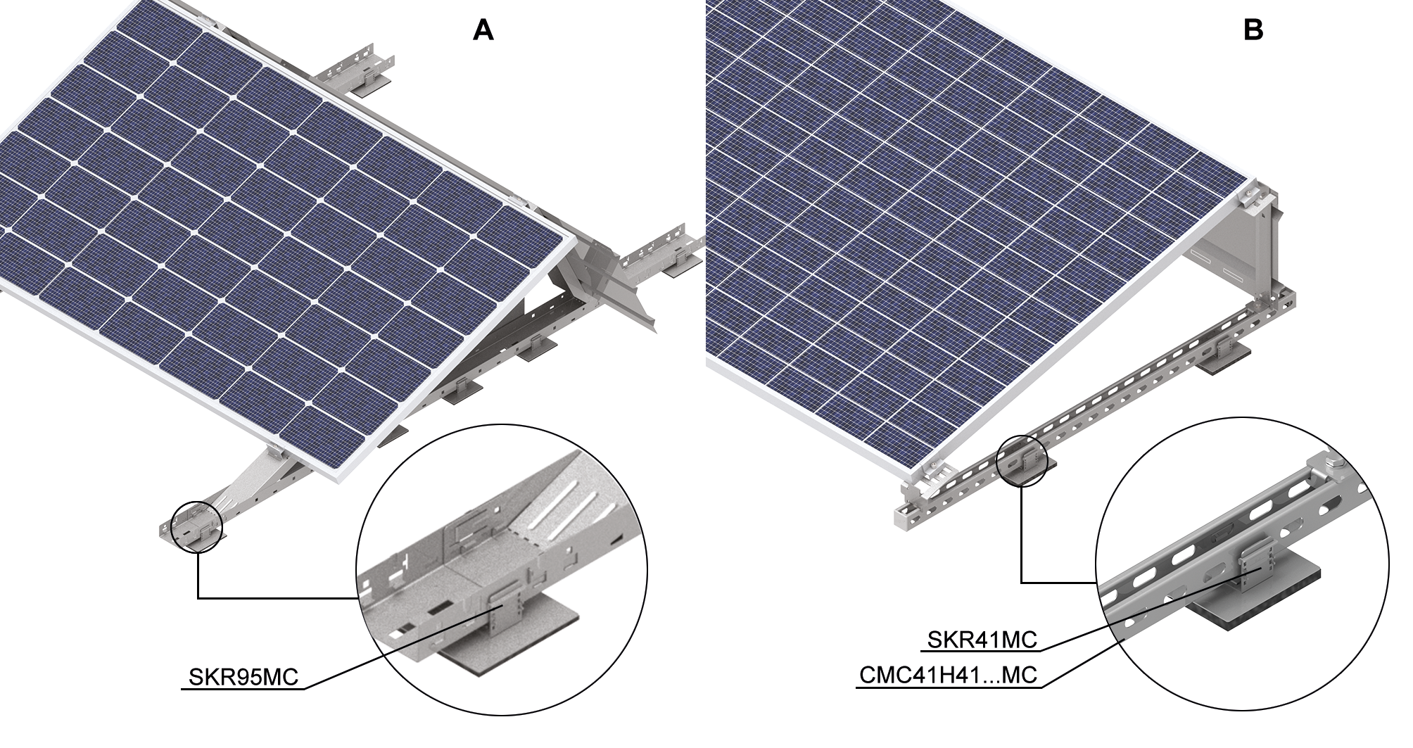 Montaż w dolnym profilu konstrukcji w celu odseparowania i podniesienia metalowych elementów od powierzchni dachu oraz zamocowania konstrukcji poprzez ułożenie balastu. Możliwość regulacji wysokości podniesienia profilu dolnego w trzech położeniach: 19, 26, 33 mm.