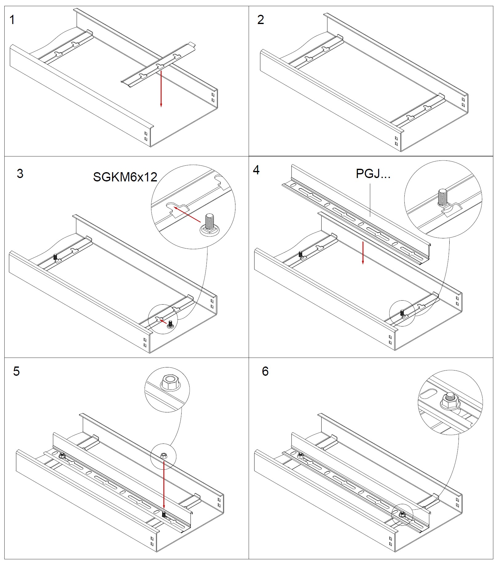 – montaż przegrody śrubami SGKM6x12