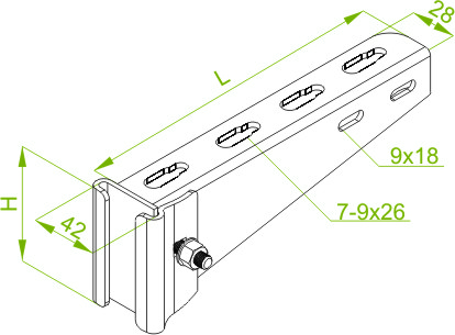 | Symbol | Catalogue number | Length L (mm) | Height H (mm) | Maximum load Fmax(kN) | Weight 1 pc. (kg) | Quantity (pcs.) | ||