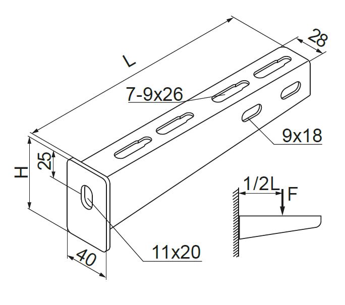 Mounting trays, cable ladders, pipes and other elements, with heavy loads.