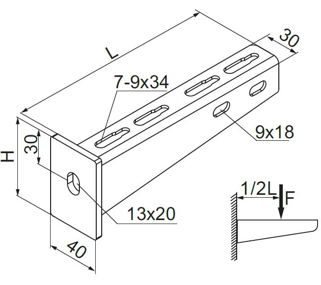 | Symbol | Catalogue number | Length L (mm) | Height H (mm) | Maximum load Fmax(kN) | Weight 1 pc. (kg) | Quantity (pcs.) | ||