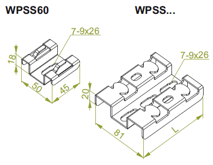 – WPSS60 bracket fits 50 mm and 60 mm wide mesh trays