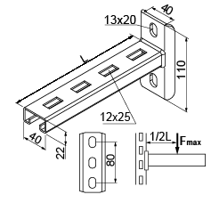 Mounting cable trays, cable ladders, pipes and other elements to steel structures based on channels with the width of ~40 mm, especially with limited space for cable routes (such as above suspended ceilings).