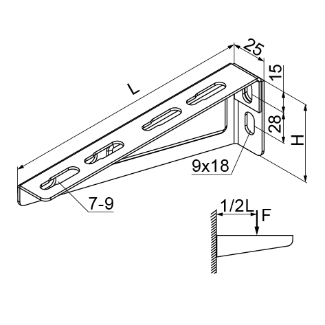 | Symbol | Catalogue number | Length L (mm) | Height H (mm) | Maximum load Fmax(kN) | Weight 1 pc. (kg) | Quantity (pcs.) | Sheet thickness (mm) | ||