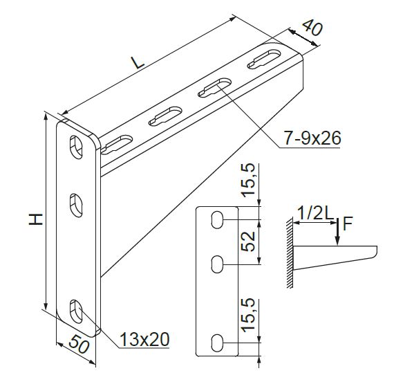 Symbol Catalogue number Length L (mm) Height H (mm) Maximum load Fmax(kN) Weight 1 pc. (kg) Quantity (pcs.)