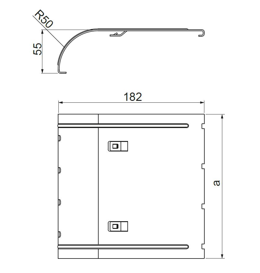 Protection of the outgoing cables from damage at the end or side of the mesh tray.