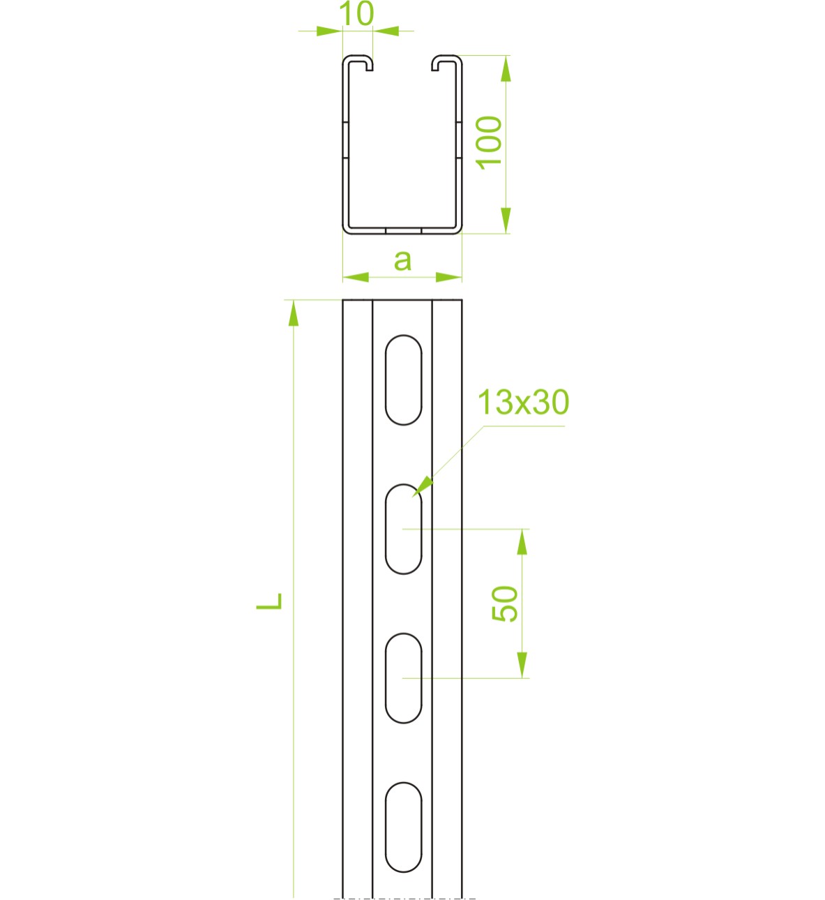 Możliwość zamówienia dowolnych odcinków do 6 m. Do montażu ceownika z łącznikiem należy użyć śrub SGKM10x20
