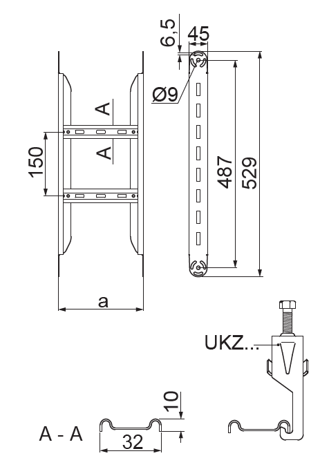 – szczeble przystosowane do montowania uchwytów kablowych UKZ/UKZO... i UKZP...