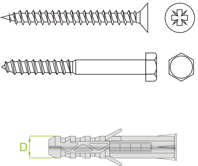 | Symbole | La forme de la tête de la vis | Dimension d (mm) | Longueur L (mm) | Numéro de catalogue | Nombre (pcs.) | ||