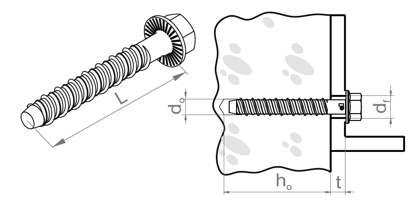 | Symbole | Numéro de catalogue | Foret Ø d0 (mm) | Trou dans l'élément fixé d1 (mm) | Profondeur du perçage h0 (mm) | Longueur utile maximale | Nombre (pcs.) | ||