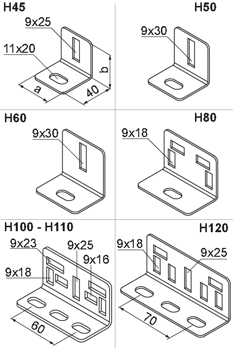 Symbole Numéro de catalogue Largeur a (mm) Dimension b (mm) Poids 1 szt. (kg) Nombre (pcs.)