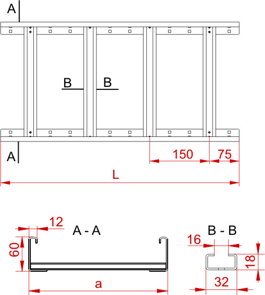 - do połączenia 2 drabinek należy użyć 2 łączniki drabin LDC/LDOCH60 i 8 kompletów śrub SGKM8×14