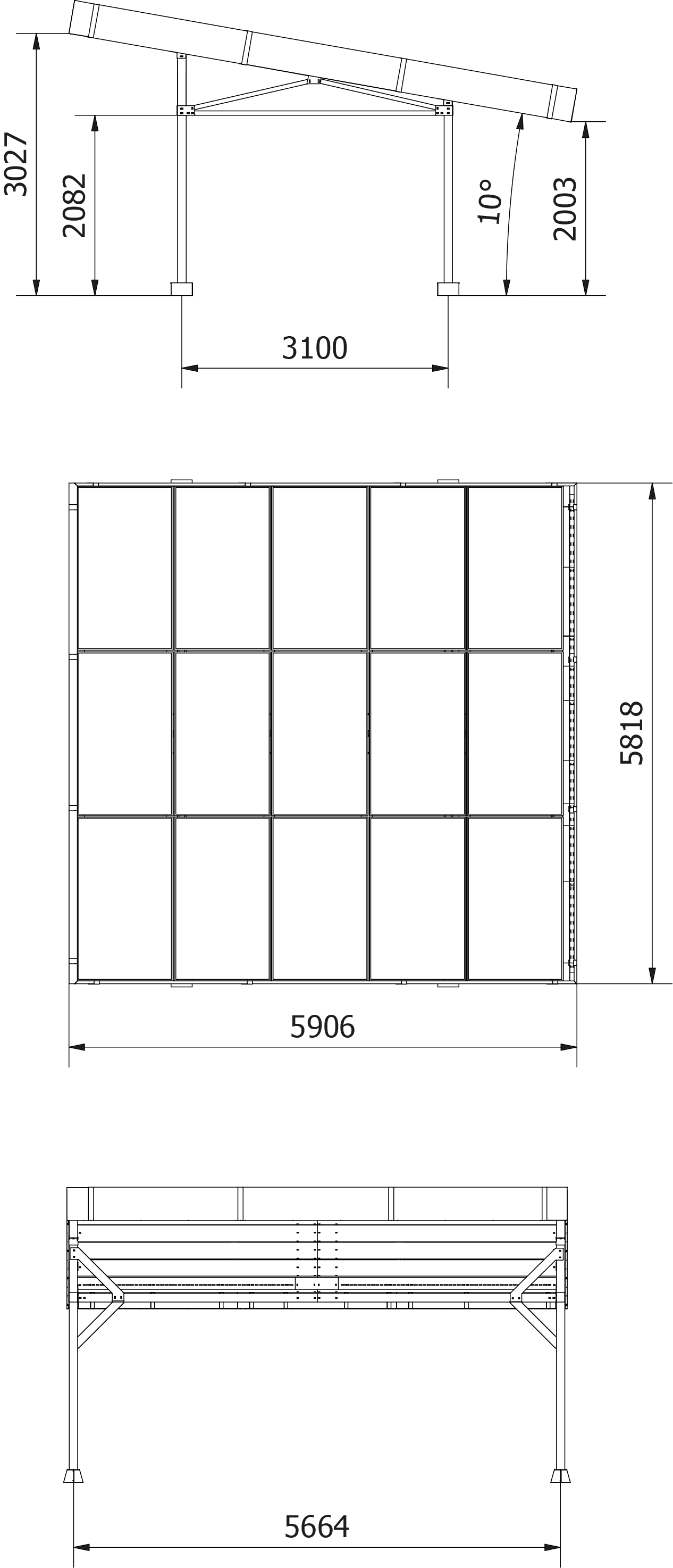 • Montaż Carportu na zwykłym gruncie przy użyciu małych standardowych, prefabrykowanych fundamentów o wadze około 100 kg.