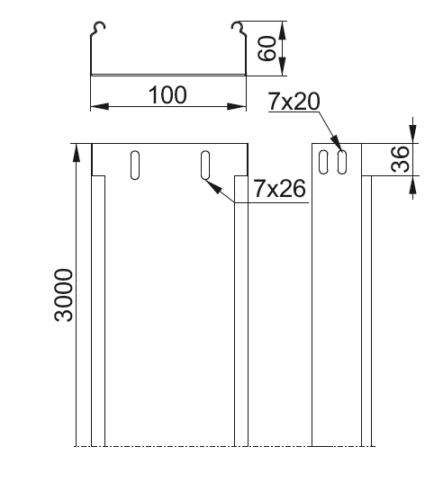 Korytko pełne (bez perforacji) posiada otwory na początku
