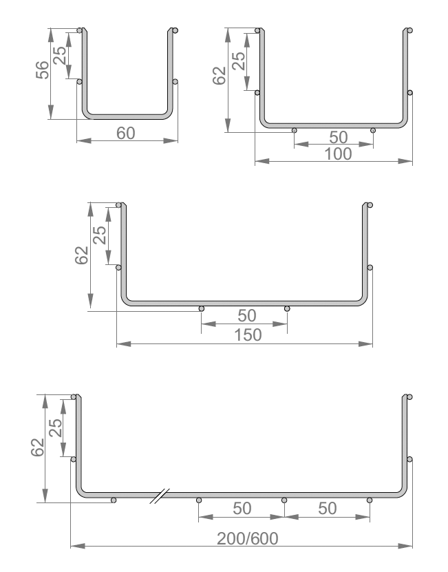 Symbol Numer katalogowy Wymiar a (mm) Wymiar L (mm) Średnica drutu (mm) Ciężar 1mb (kg) Ilość w opakowaniu (szt. / m. b.) Przekrój użyteczny (mm2) Plik 3D