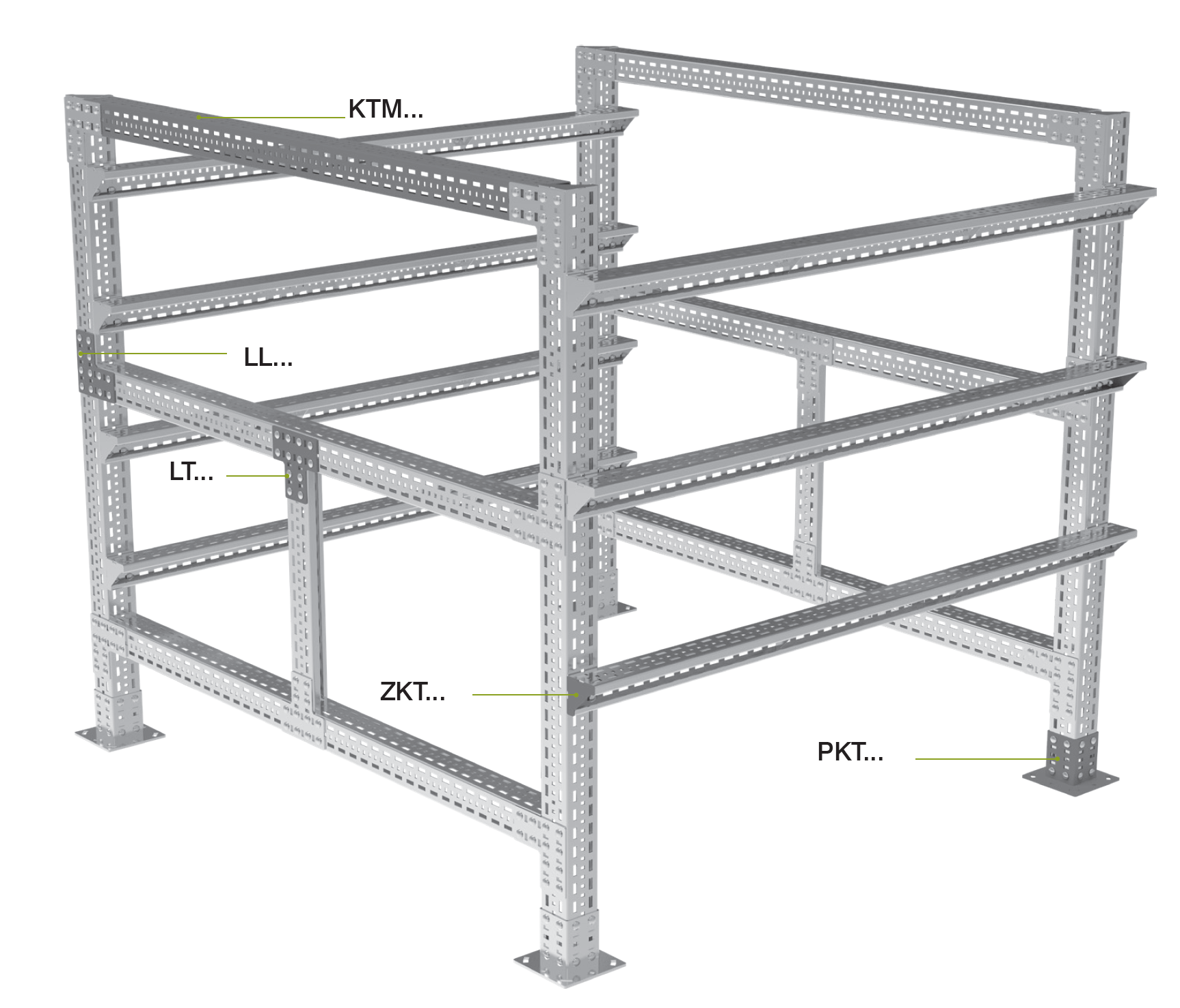 – umożliwia budowanie konstrukcji wsporczych pod montaż kabli/uchwytów kablowych w dowolnej orientacji