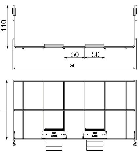 – ilość łączników dolnych w korytkach o szerokościach: 100-200 mm - 1 szt., 300-600 mm - 2 szt.