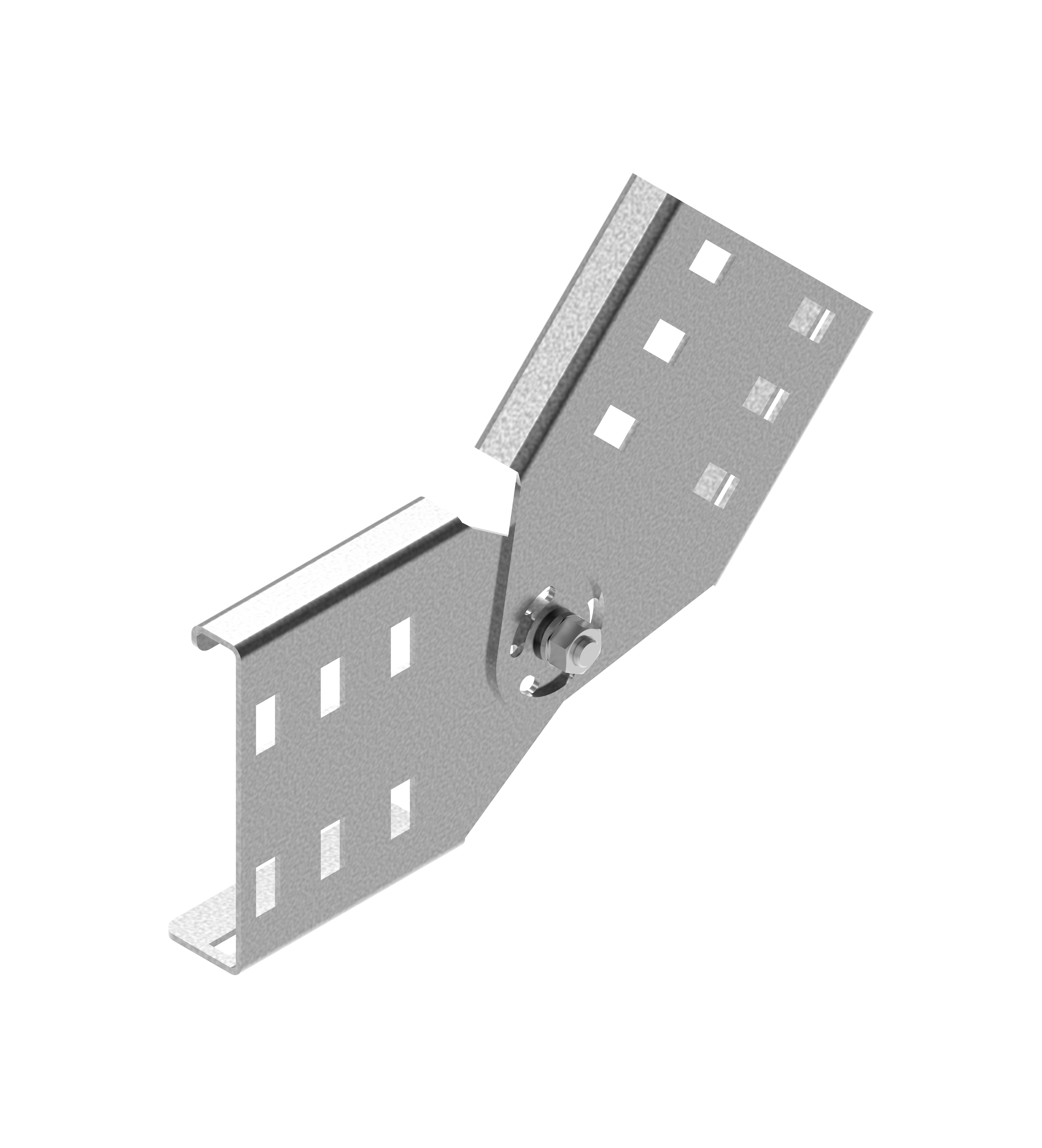 Łączenie korytek i drabinek kablowych prowadzonych pod różnym kątem. Regulacja kąta w pełnym zakresie z blokadą.