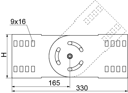 Łączenie drabin kablowych prowadzonych pod różnym kątem. Regulacja kąta w pełnym zakresie z blokadą.