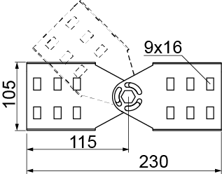 Łączenie drabin kablowych prowadzonych pod różnym kątem. Regulacja kąta w pełnym zakresie z blokadą.