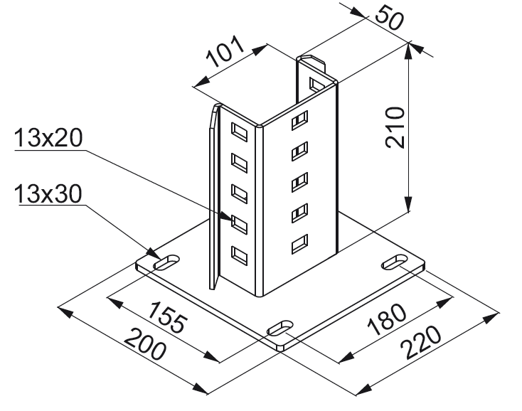 - gęsta perforacja w części pionowej umożliwia regulacje wysokości montażu słupa podporowego
