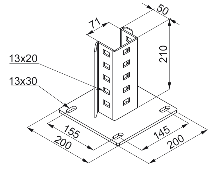- gęsta perforacja w części pionowej umożliwia regulacje wysokości montażu słupa podporowego