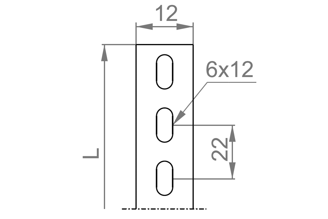 | Symbol | Wymiar L (mm) | Obciążenie maksymalne F max (kN) | Ciężar 1mb (kg) | Numer katalogowy | Ilość w opakowaniu (szt. / m. b.) | ||