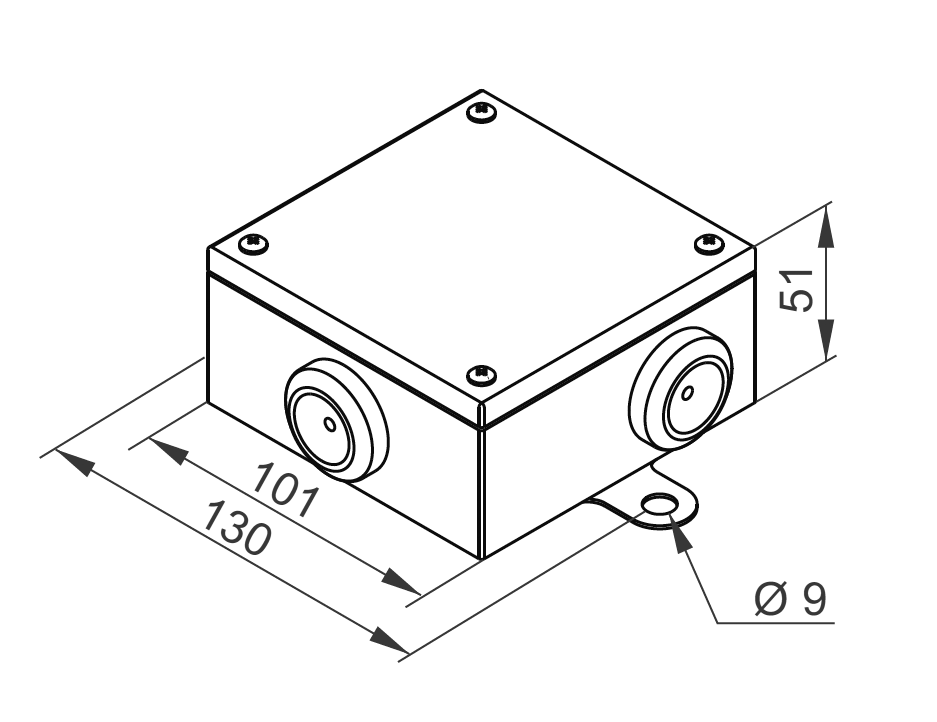 Stopień ochrony IP65, zakres uszczelnienia od 7 mm do 18,5 mm. Mocowanie poprzez zewnętrzne uchwyty montażowe do betonu za pomocą kołków stalowych. Do drabinek i korytek kablowych za pomocą śruby SGKM6x12. Montaż puszki na korycie siatkowym za pomocą uchwytu puszki UP1 lub UPP... i kompletu SGNM6x12 lub SGKM6x12