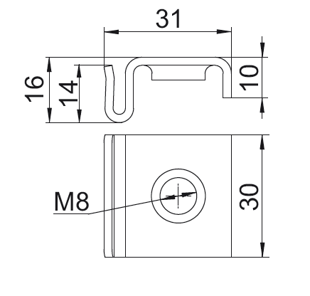 Do montażu UPPM8MC należy użyć śruby SAM8x...E